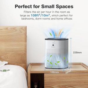 - 2-Pack High Efficiency: CARB Certified and FCC Certified. This compact air purifier for bedroom features a 360° air intake system, ensuring that every corner of the room is effectively purified from all directions. Its portable design allows for flexible use, you can use a single purifier in a bedroom or two at the same time in the living room, bringing fresh and clean air closer to you.