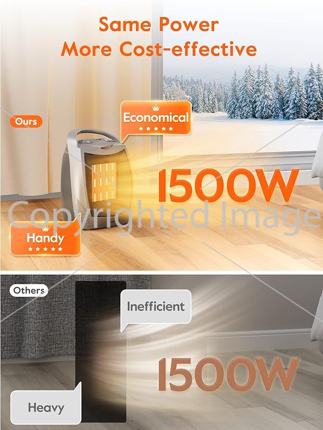 - Quiet and fast heating: The noise this ceramic heater makes is lower than 45 decibels, quiet enough for most people to use in a bedroom while sleeping. With PTC ceramic heating tech and high speed fan, this heater put out tons of heat to heat up 200 square feet in seconds