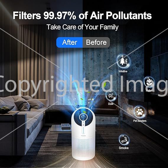 - 20DB QUIET AIR CLEANER: With advanced motor, the 20dB noise level in sleep mode is almost voiceless. This air purifiers for home large room cleans air quietly, doesn't affect your work, study or sleep. All lights can be turned off to enjoy a perfect night of sleep.