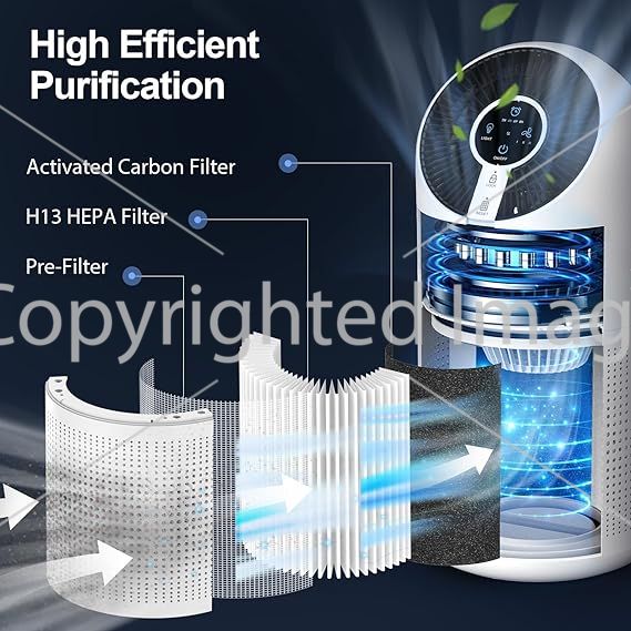- 3 STAGE FILTRATION: The pre-filter, true H13 HEPA filter and high-efficiency activated carbon filter capture allergens, pet hair, dander, smoke, odor, and large dust particles, removing nearly all airborne contaminants. Powerful efficient home air purifier prevents respiratory problems, allergic reactions, and asthma.