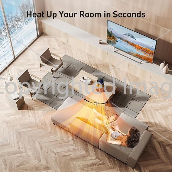 - Fast PTC Ceramic Heating. Powered by 1500W PTC ceramic heating elements, this TRUSTECH electric space heater warms you up in just 2 seconds. With a wide 70° oscillation range, it enhances air circulation, ensuring a cozy atmosphere throughout the entire room while avoiding the discomfort caused by direct blowing. Embrace the warmth provided by the TRUSTECH electric space heater. The ideal heating coverage area is up to 130 sq. ft.